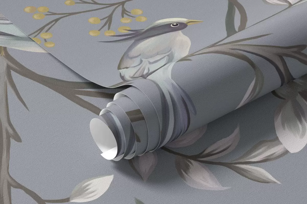 Fotomurales Ramas florales con pájaros sobre fondo verdoso Nr. w05127v5