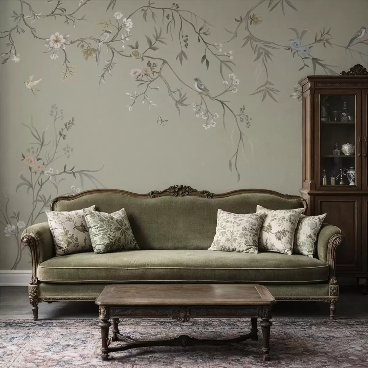 Fotomurales Diseño floral con pájaros sobre fondo fresco Nr. w05127v6