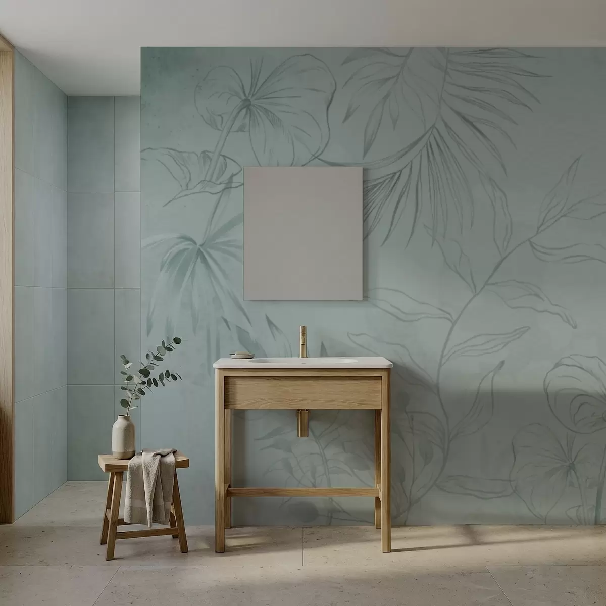 Fotomurales Plantas lineales sobre fondo verde suave Nr. w05128v1