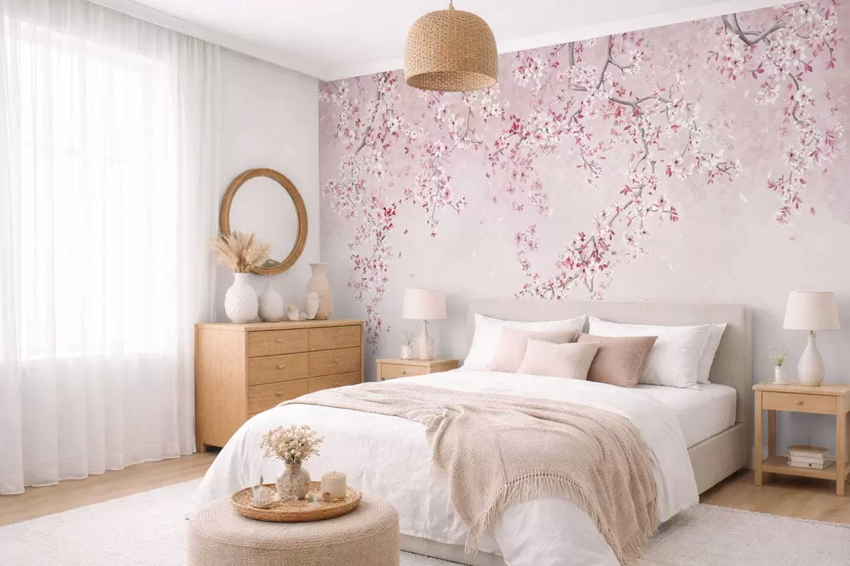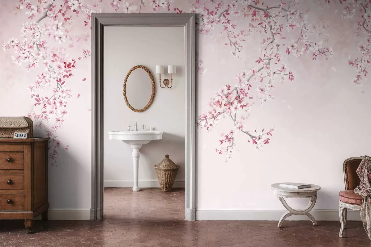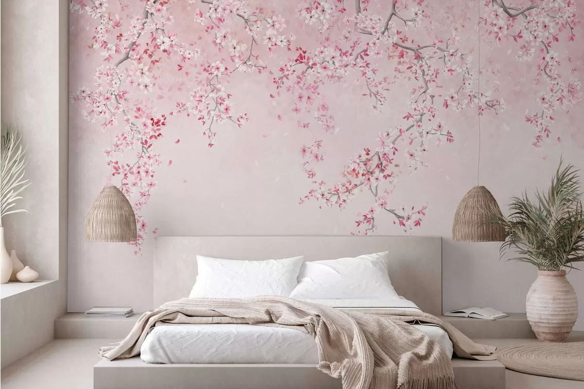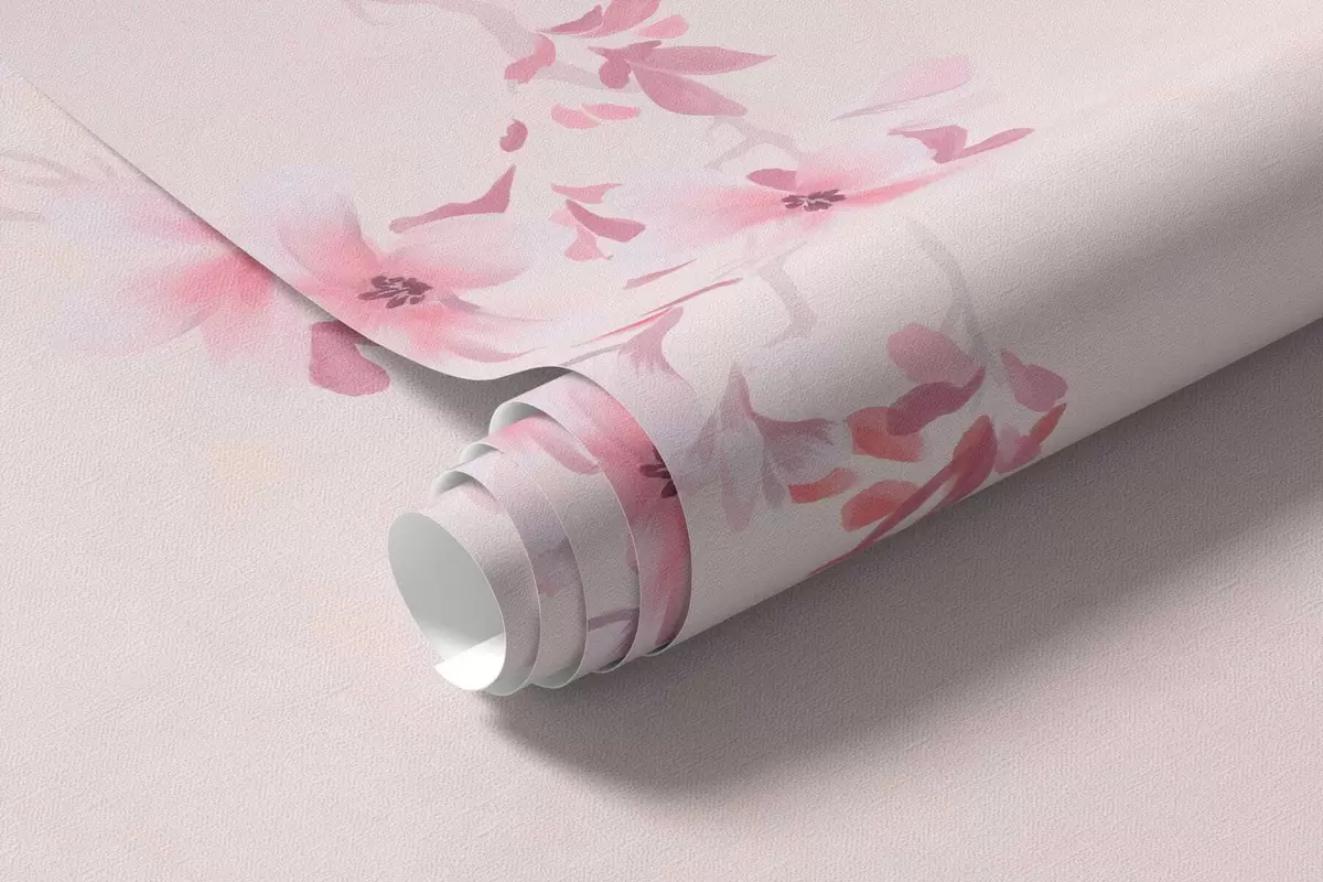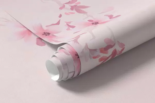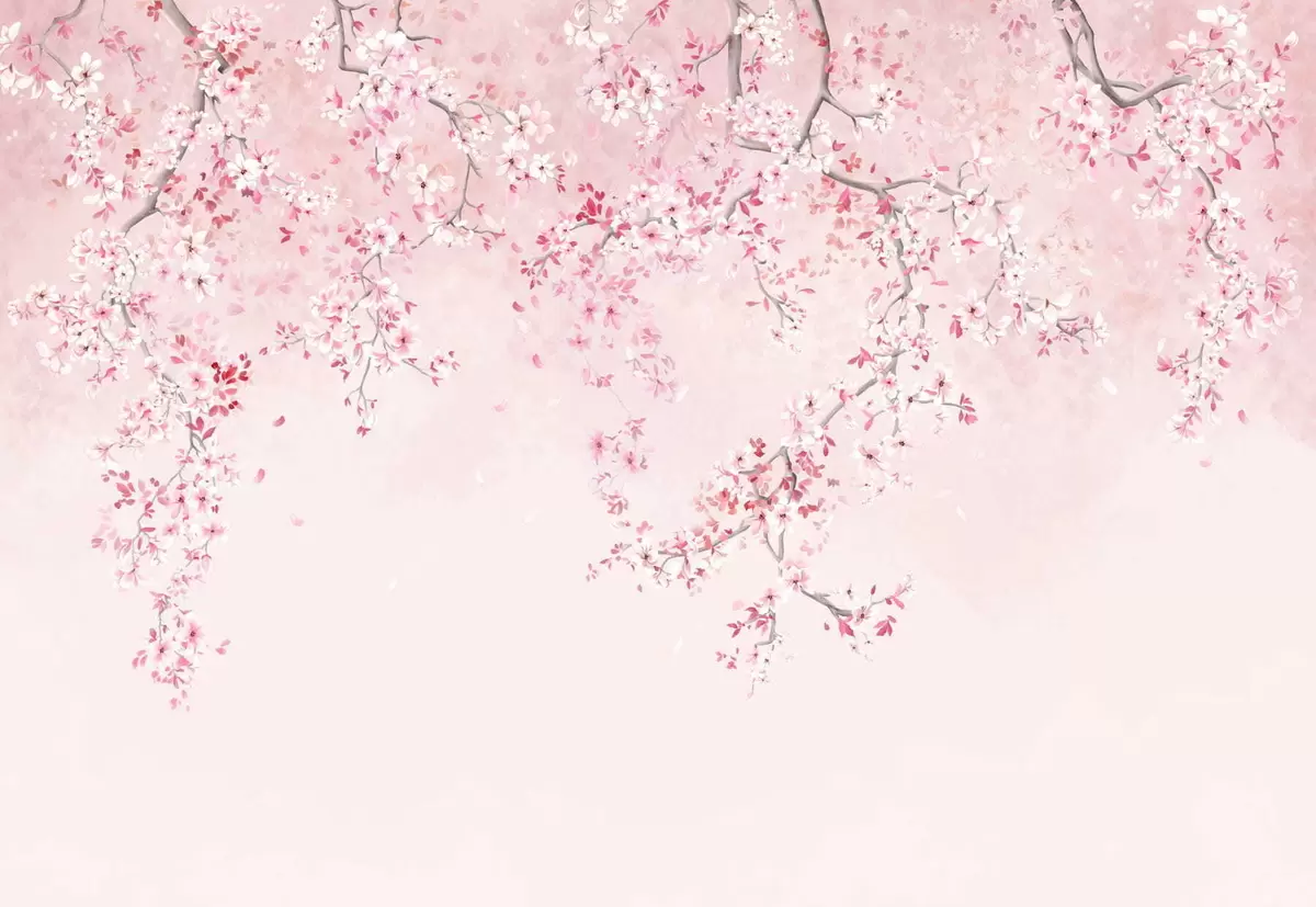 Fotomurales Ramitas con flores rosas sobre un fondo pastel suave. Nr. w05129v1