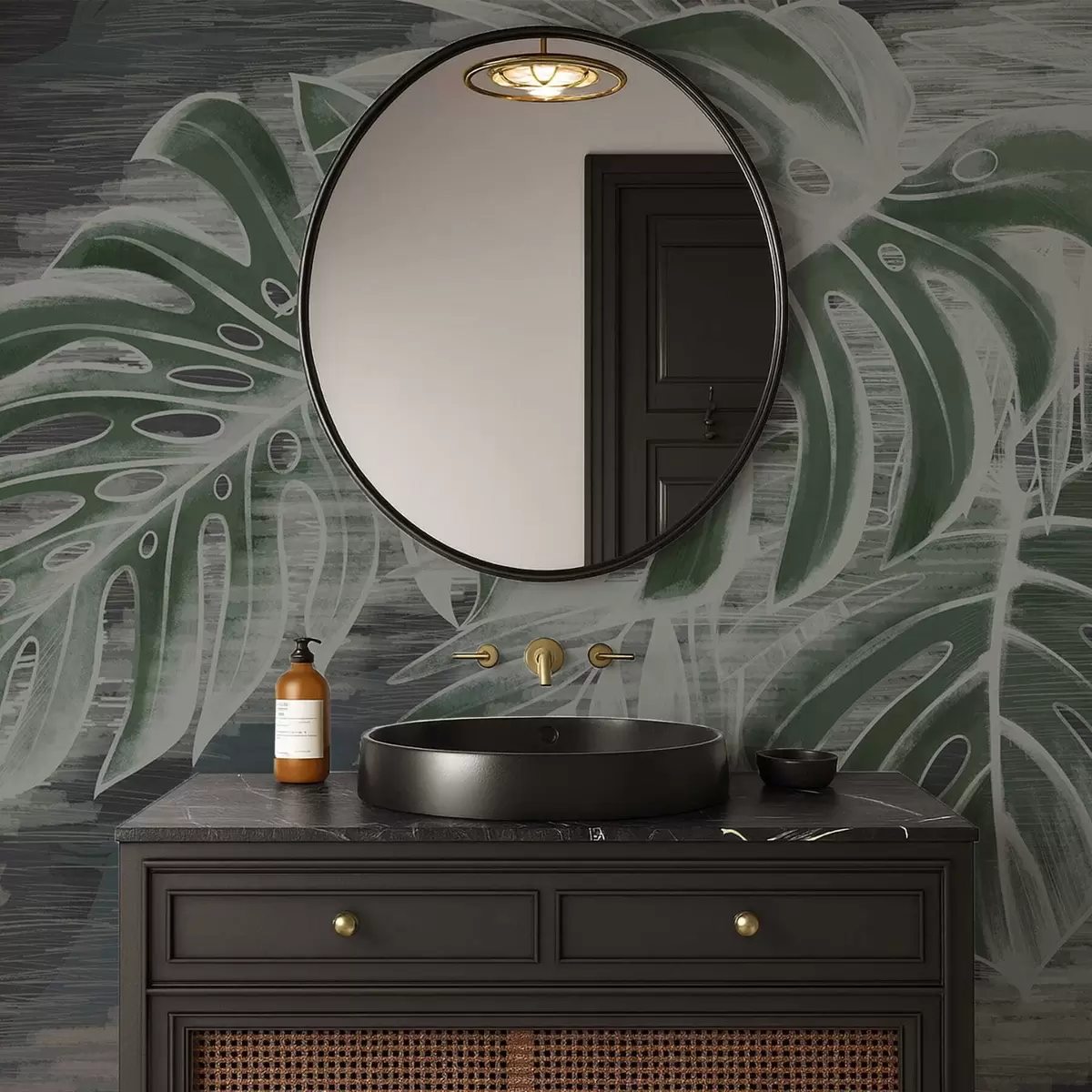 Fotomurales Hojas de color verde oscuro sobre un fondo oscuro con textura. Nr. w05130v4