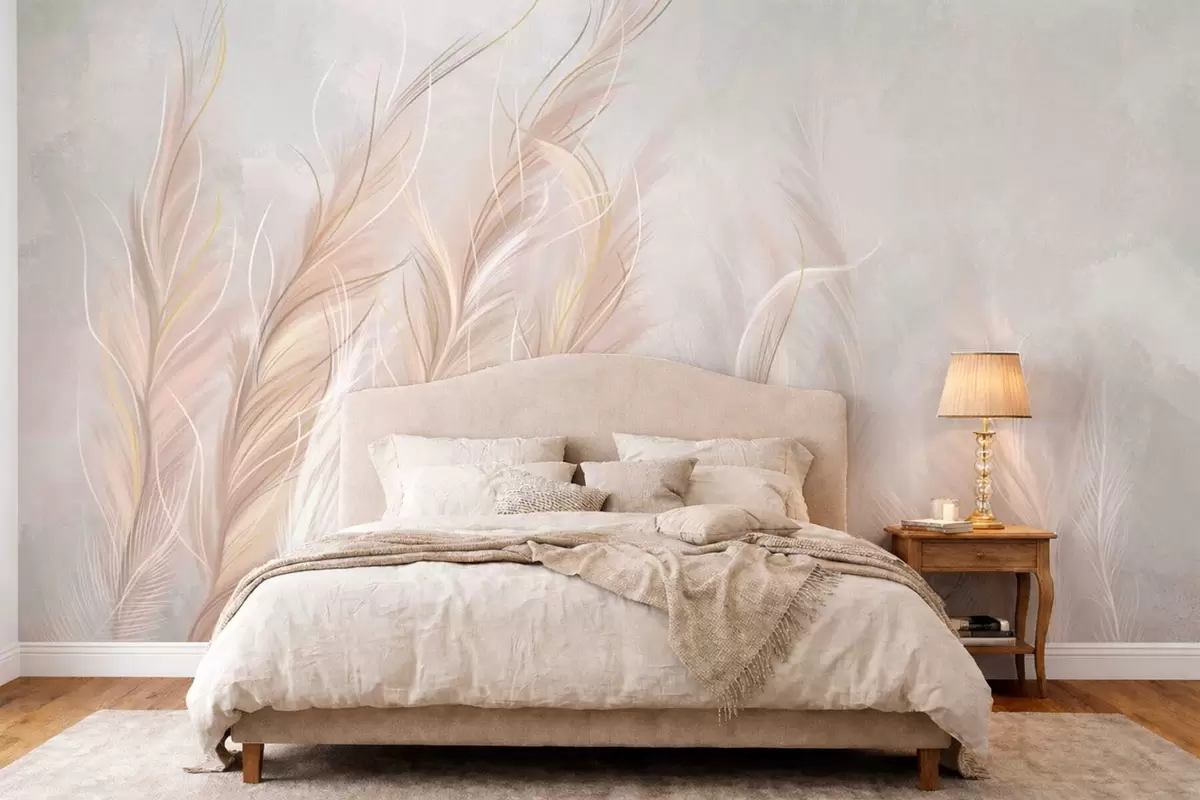 Fotomurales Plumas suaves y abstractas en tonos neutros claros. Nr. w05153