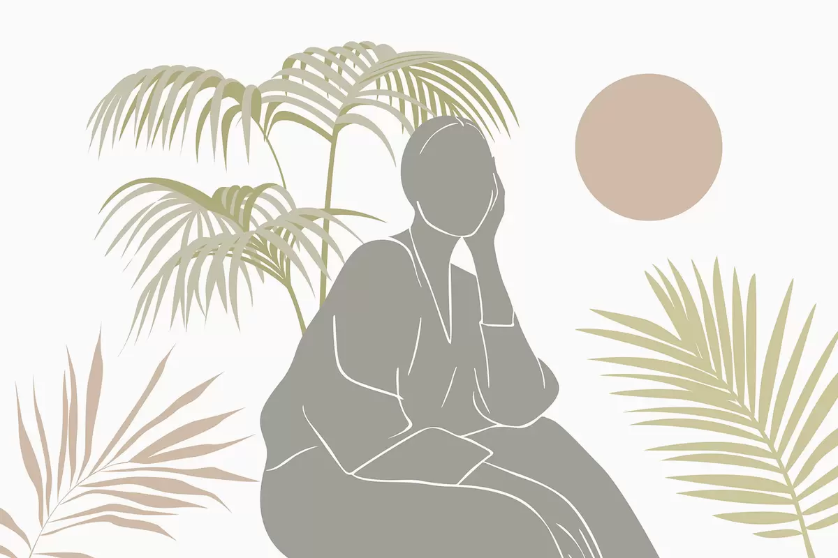 Fotomurales Silueta de una mujer y hojas de palmera Nr. w05190
