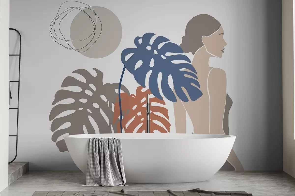Fotomurales Silueta de una mujer cerca de hojas tropicales Nr. w05192