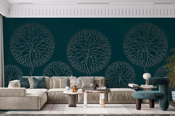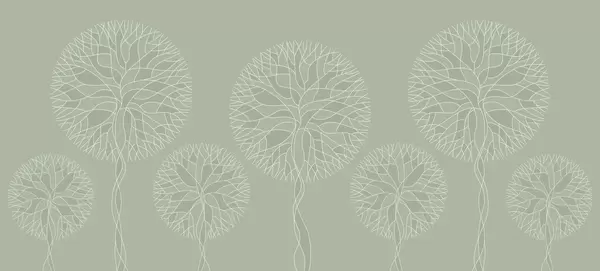 Fotomurales Árboles lineales fantásticos con copas frondosas en elegantes tonos esmeralda oscuro. Nr. w05213