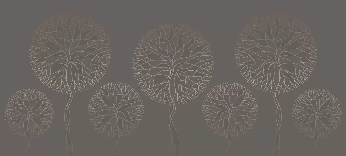 Fotomurales Árboles lineales fantásticos con copas frondosas en elegantes tonos moca. Nr. w05213v1