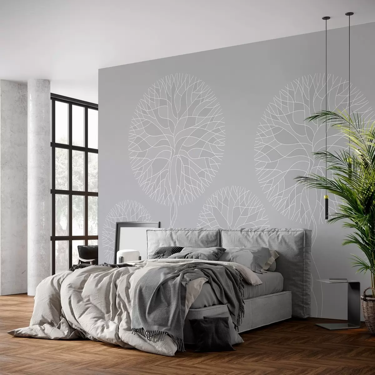 Fotomurales Árboles lineales fantásticos con copas frondosas en tonos gris claro. Nr. w05213v4