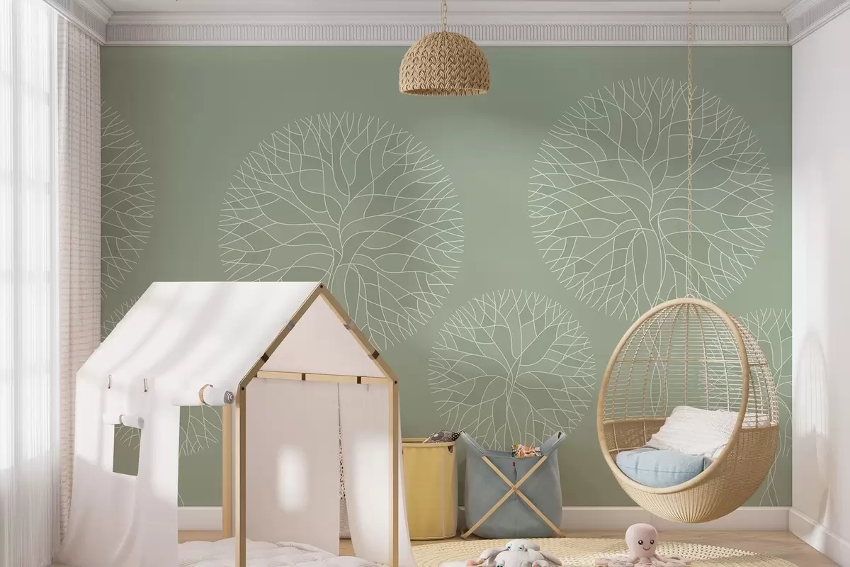 Fotomurales Árboles lineales fantásticos con copas frondosas en tonos verde claro. Nr. w05213v6