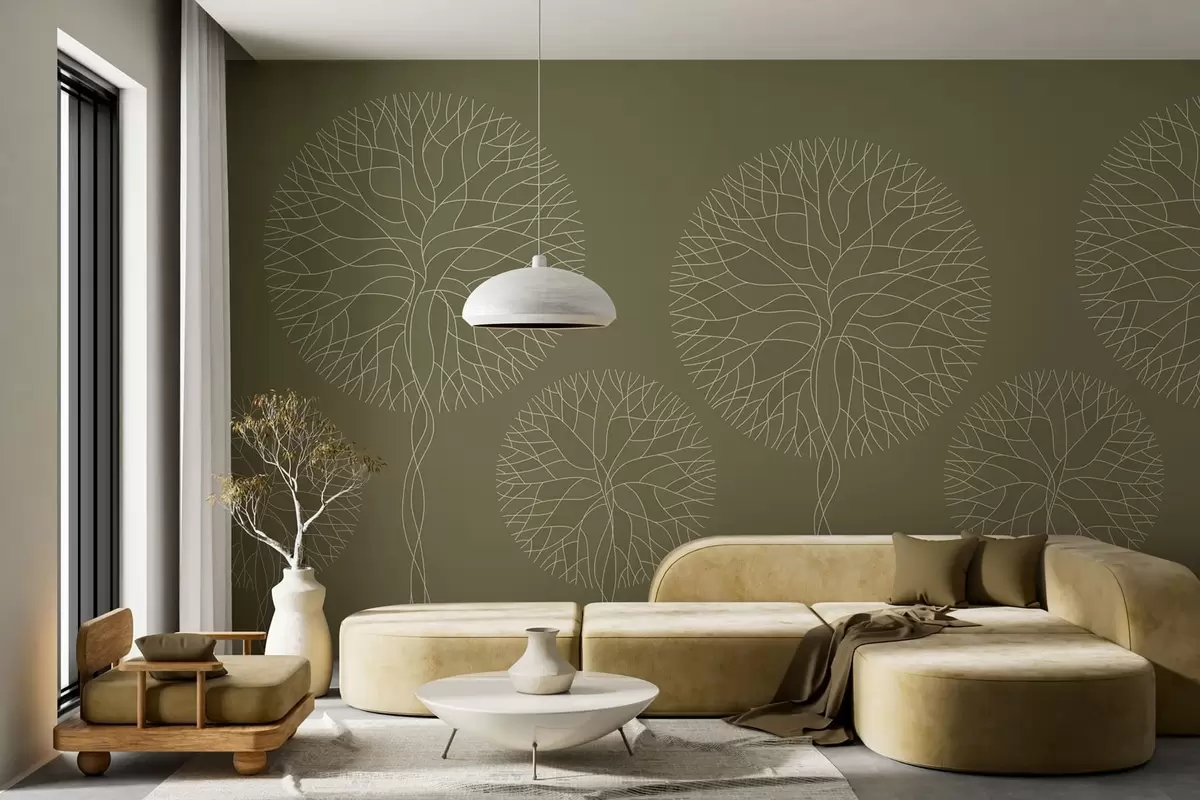 Fotomurales Árboles lineales fantásticos con copas frondosas en tonos caqui. Nr. w05213v7