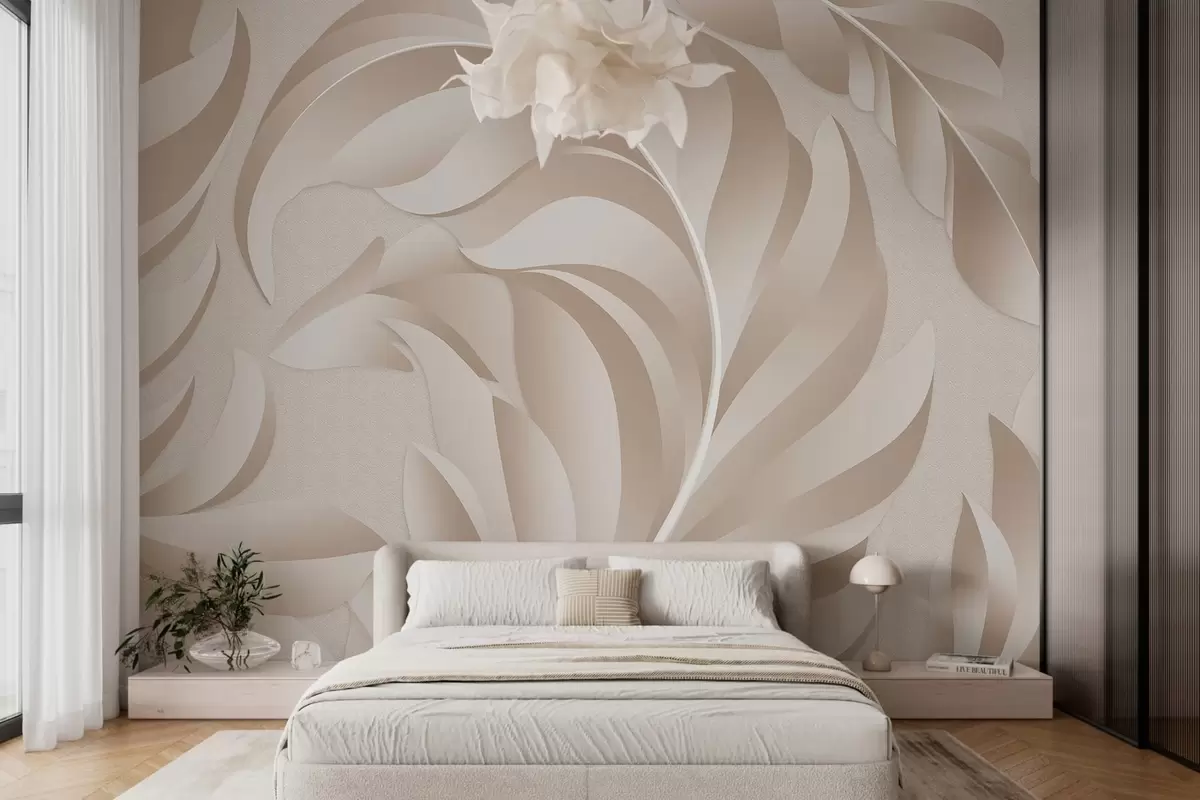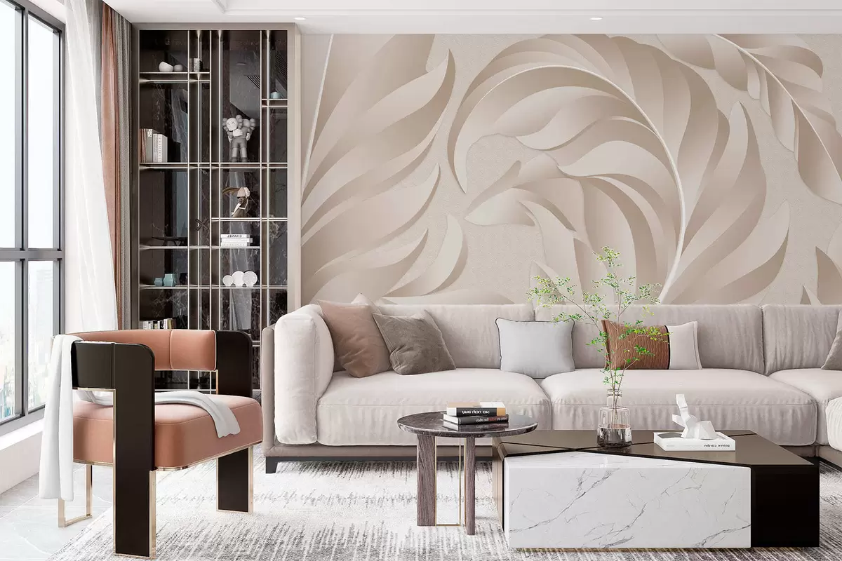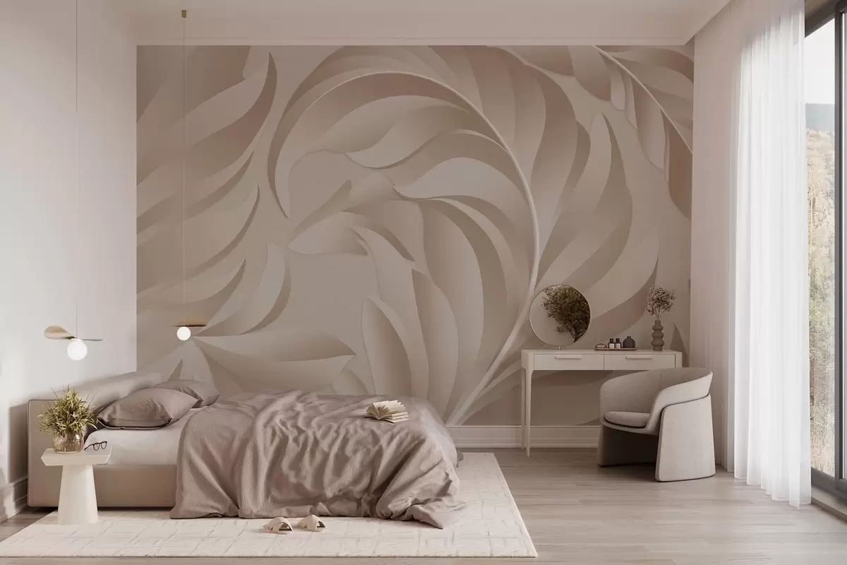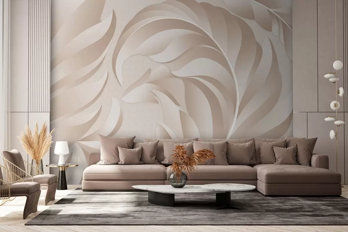Fotomurales Plumas grandes con textura en tonos beige y empolvados. Nr. w05231
