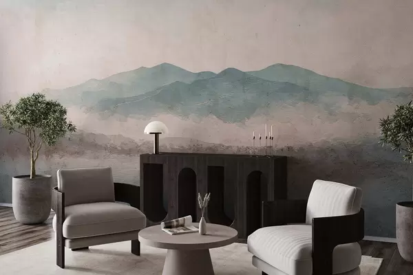 Fotomurales Paisaje montañoso pintado con estilo grunge Nr. w05241