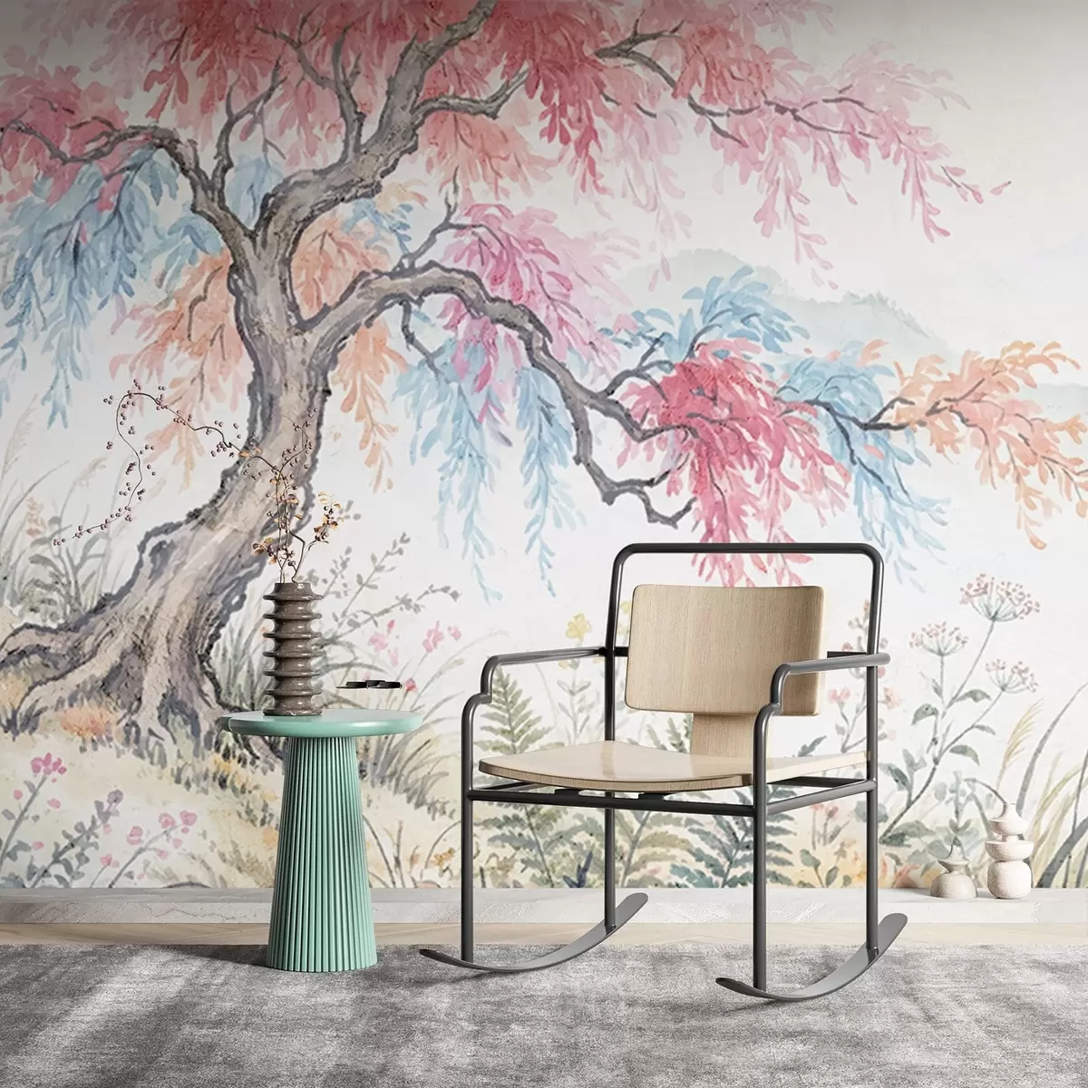 Fotomurales Jardín pintado con colores vivos en un muro de hormigón. Nr. w05246