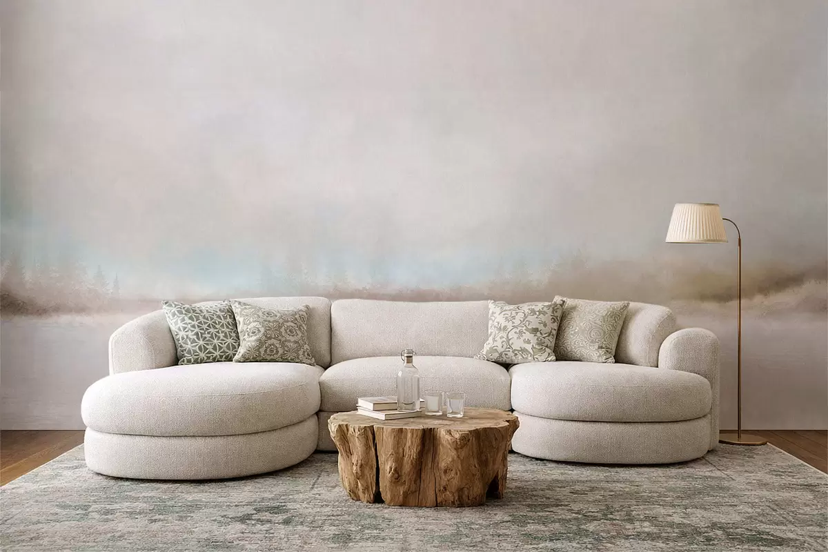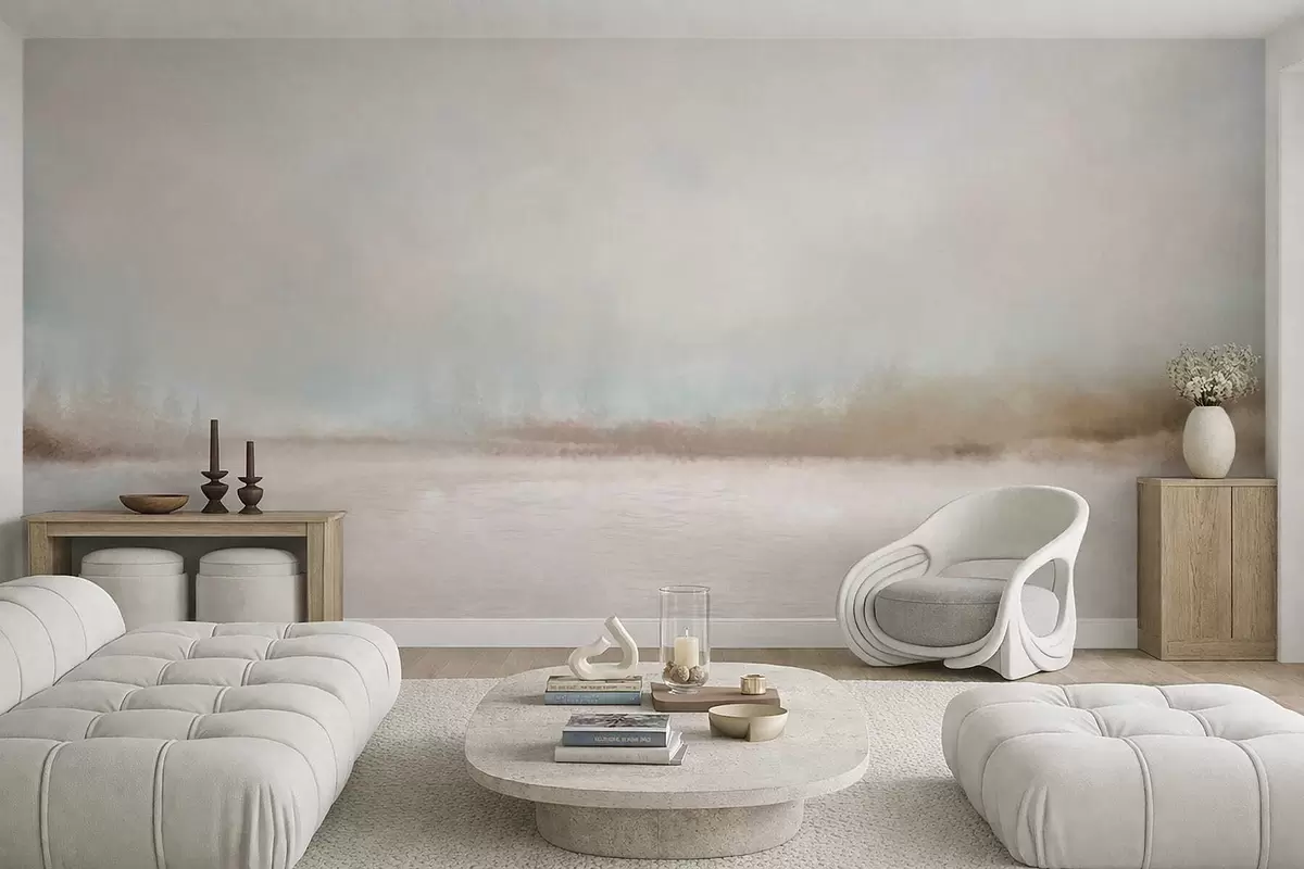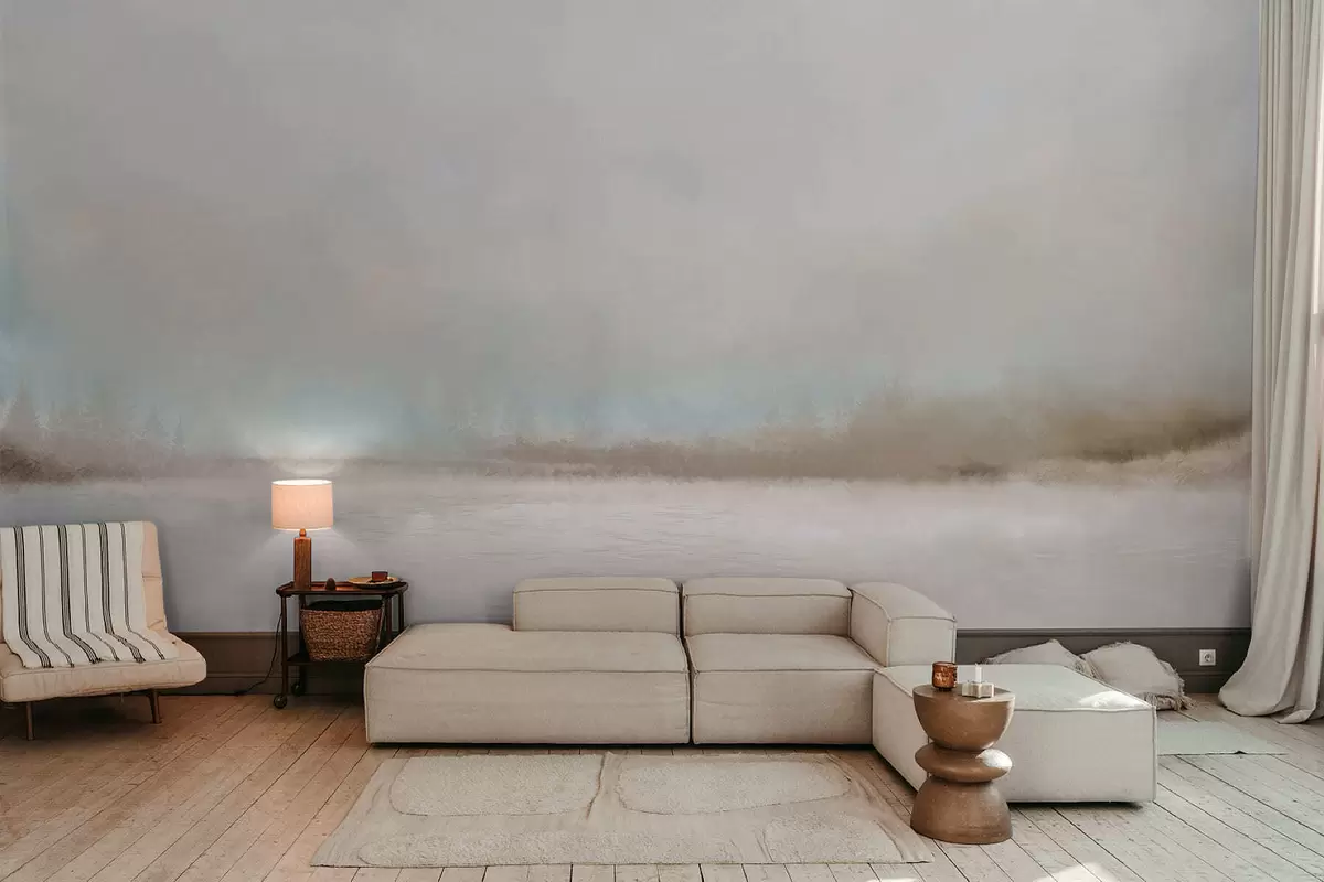 Fotomurales Paisaje brumoso con lago y bosque Nr. w05319