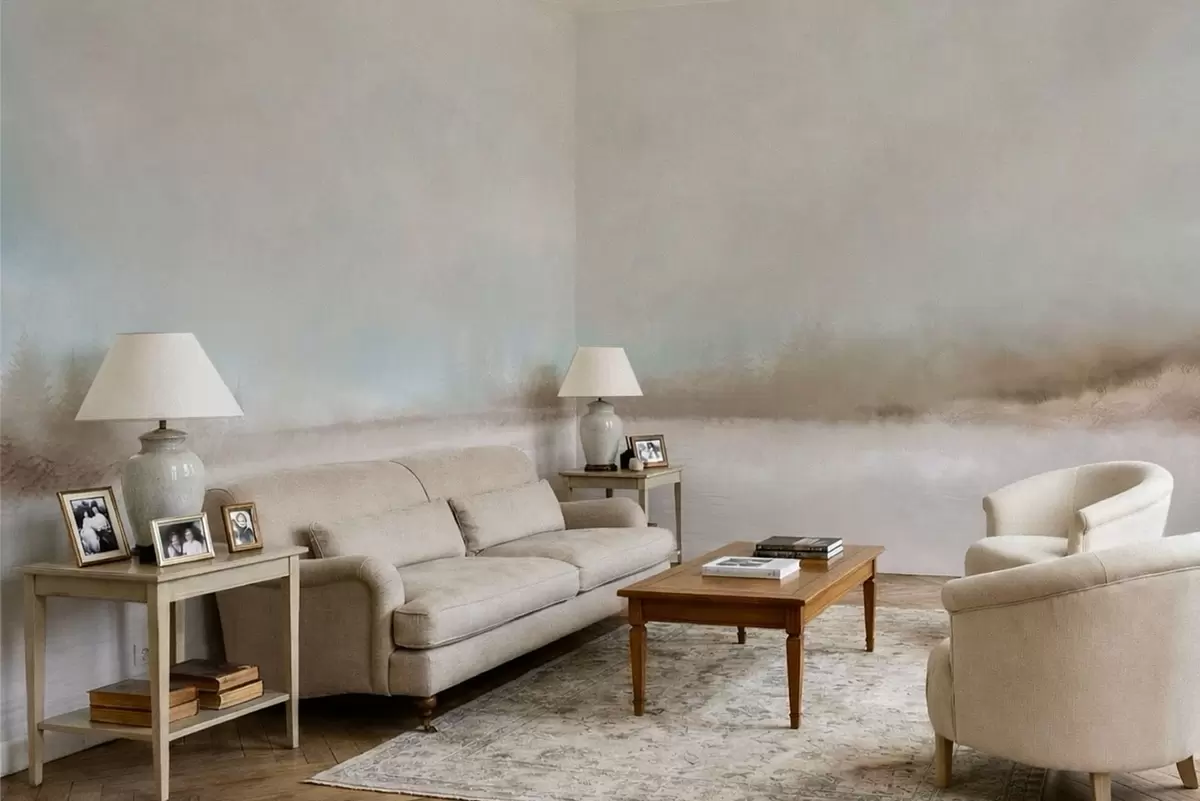 Se puede limpiar suavemente con una esponja suave. Los murales de pared con recubrimiento de barniz pueden limpiarse con agua.