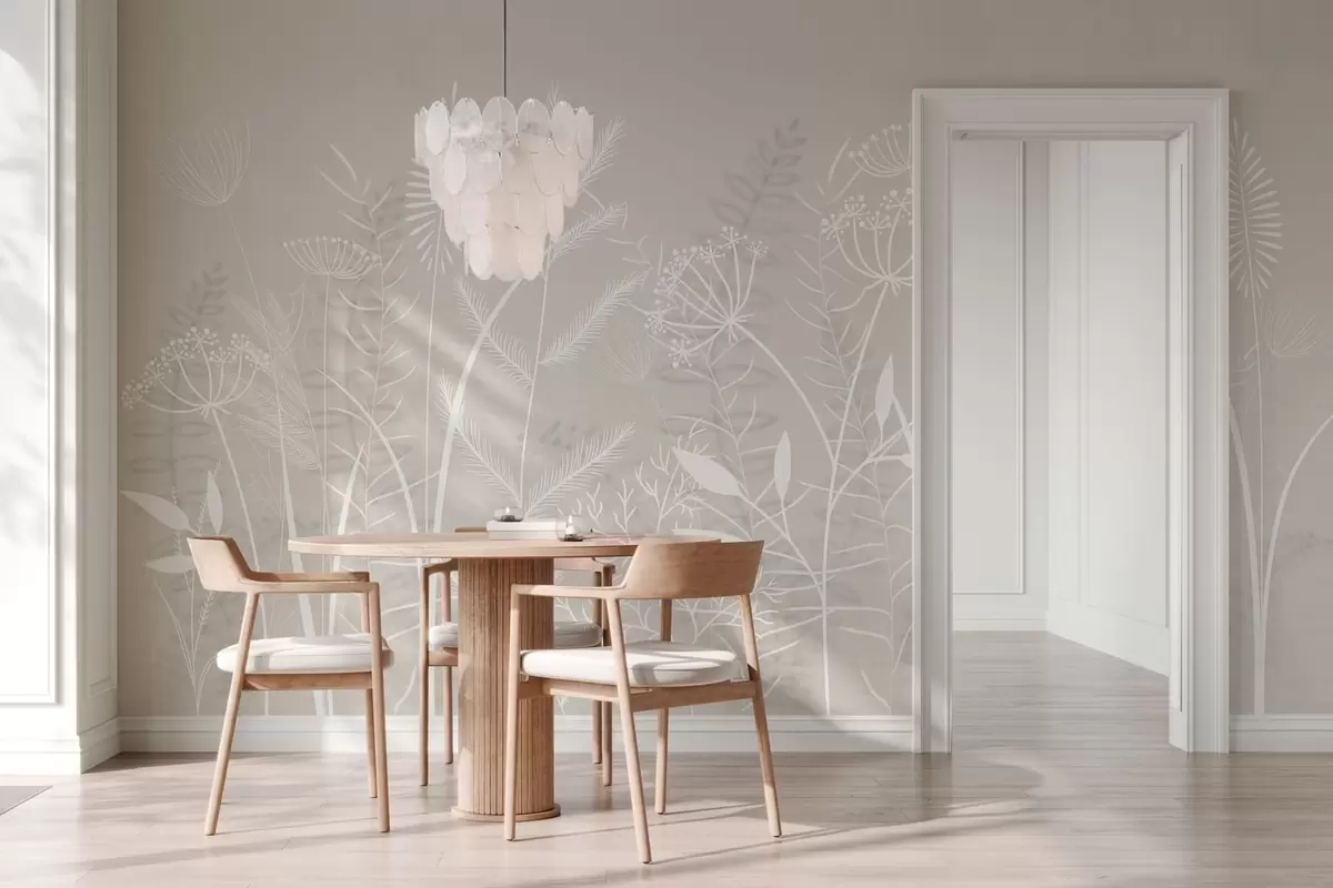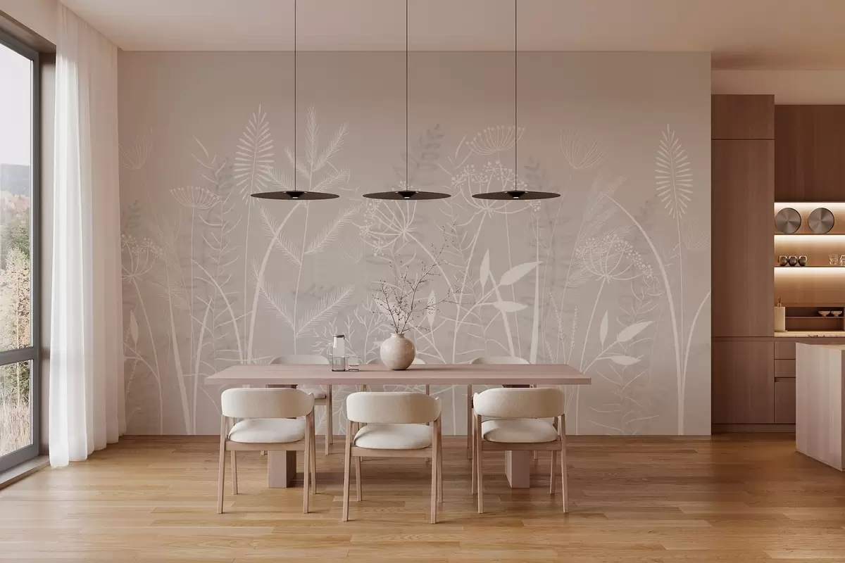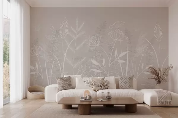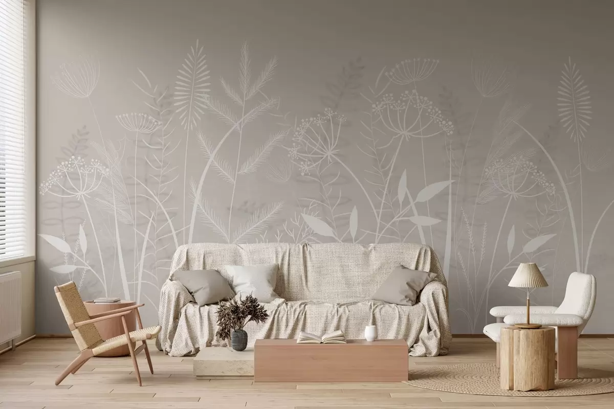 Fotomurales delicadas hierbas silvestres y flores pintadas a mano sobre un fondo beige Nr. w05383v1