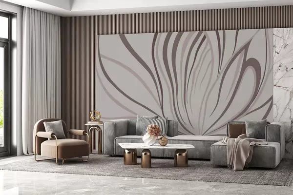 Fotomurales Flor estilizada con líneas suaves en tonos rosa y beige Nr. w05392v1