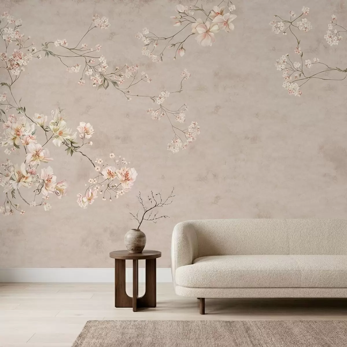 Fotomurales Ramas florales delicadas de estilo chinoiserie sobre fondo claro Nr. w05427