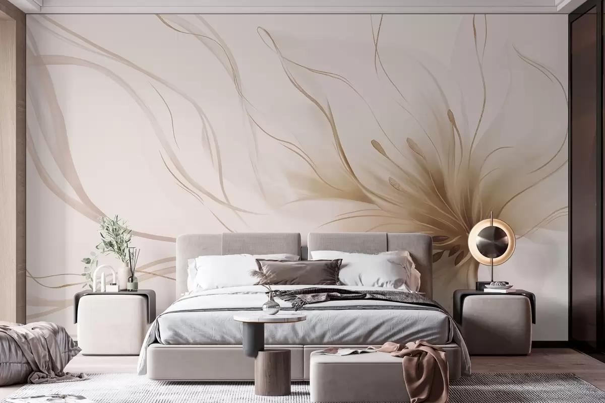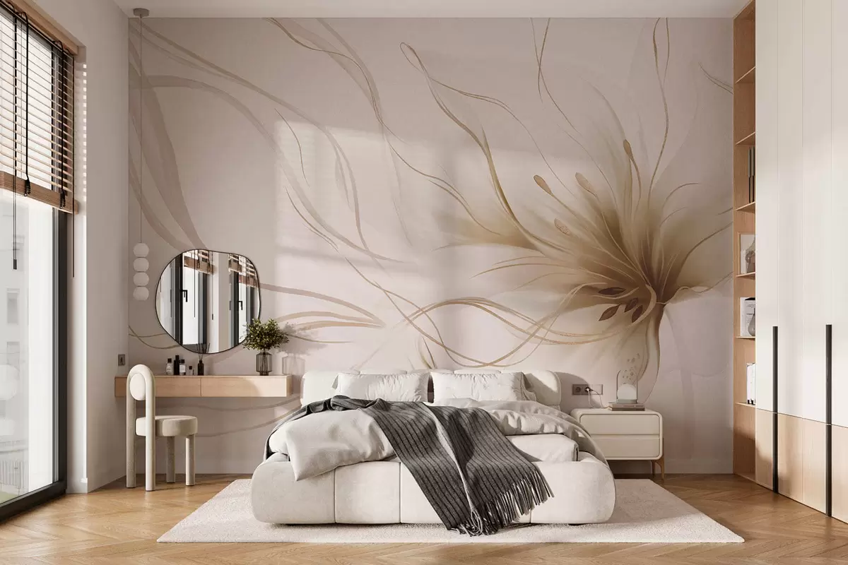 Fotomurales Una flor abstracta de color beige con líneas fluidas al estilo del arte fluido Nr. w05428v2