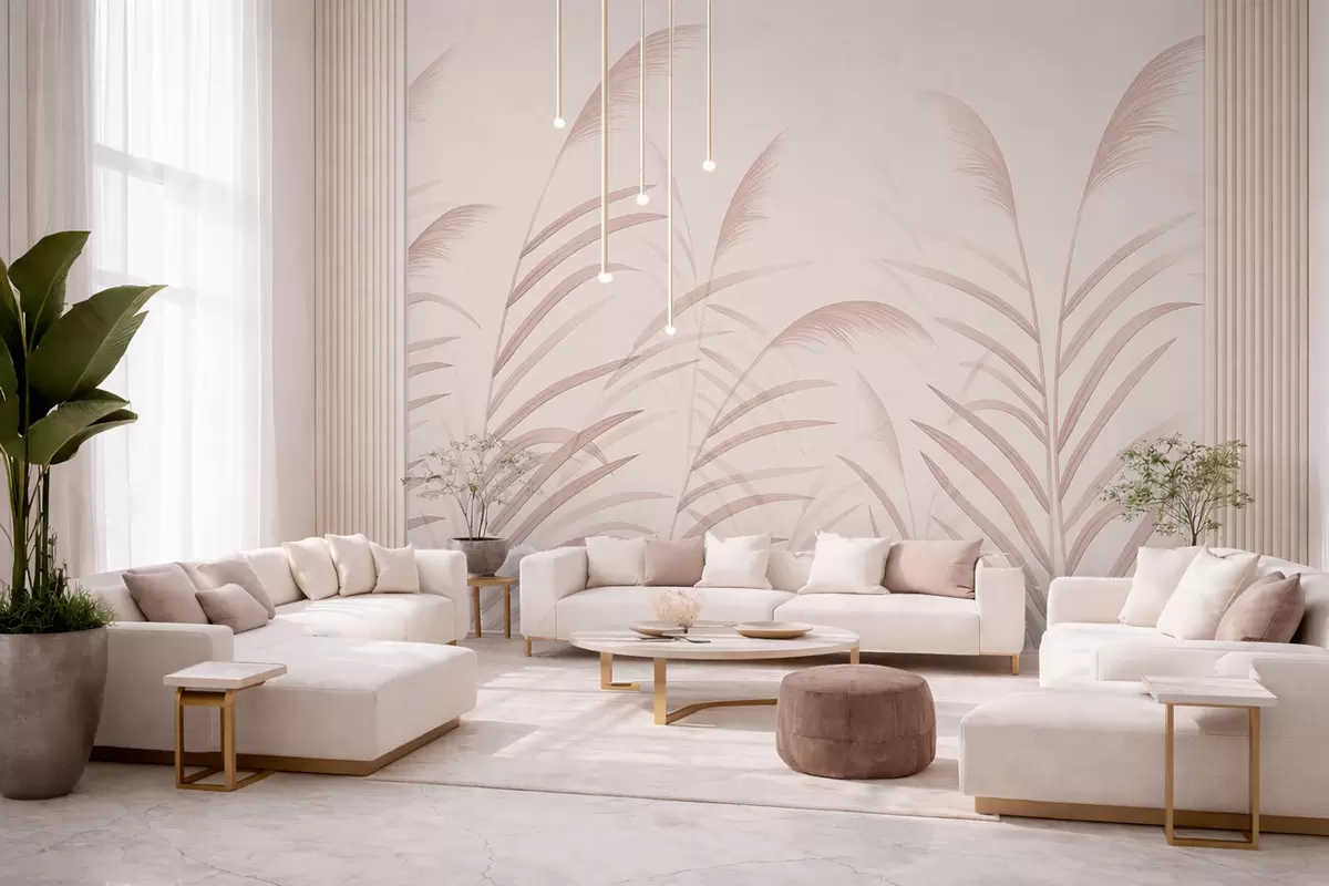 Fotomurales Hierbas minimalistas en suaves tonos rosados Nr. w05432v2