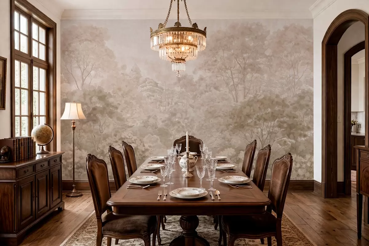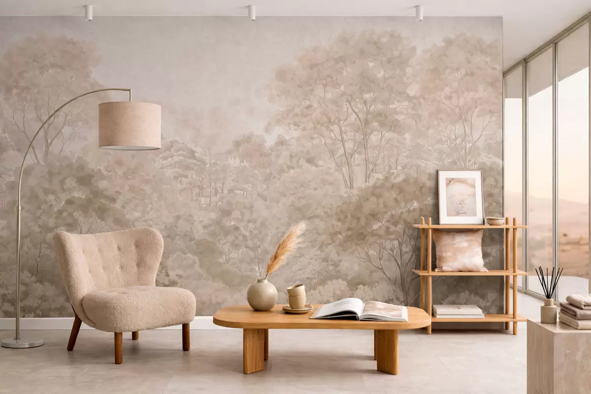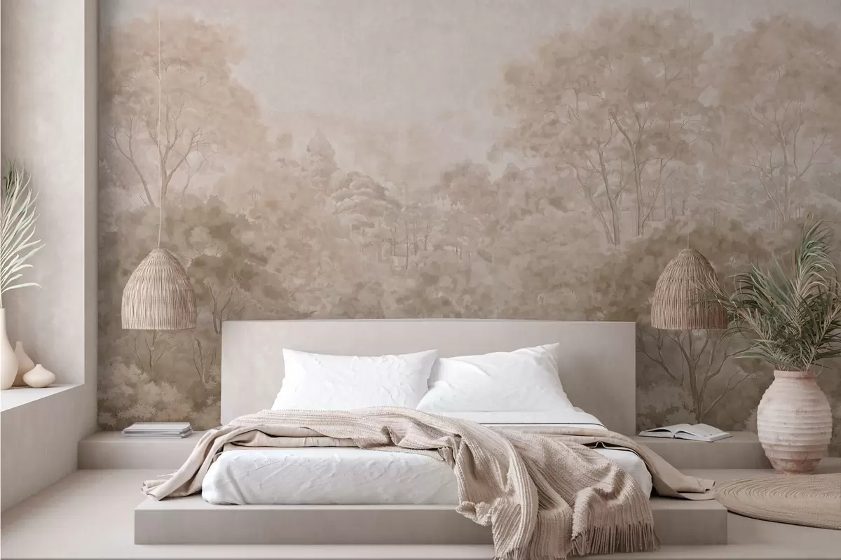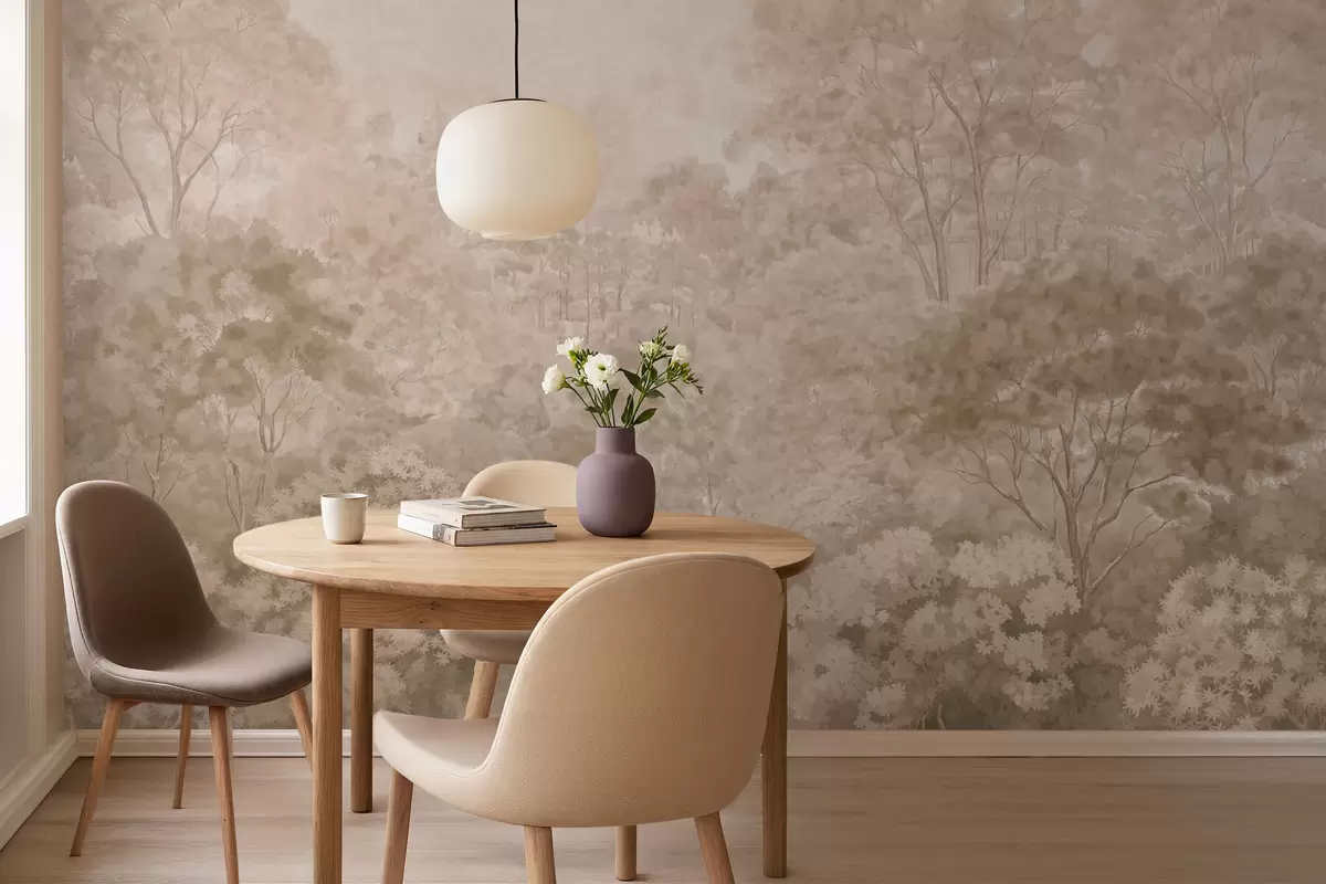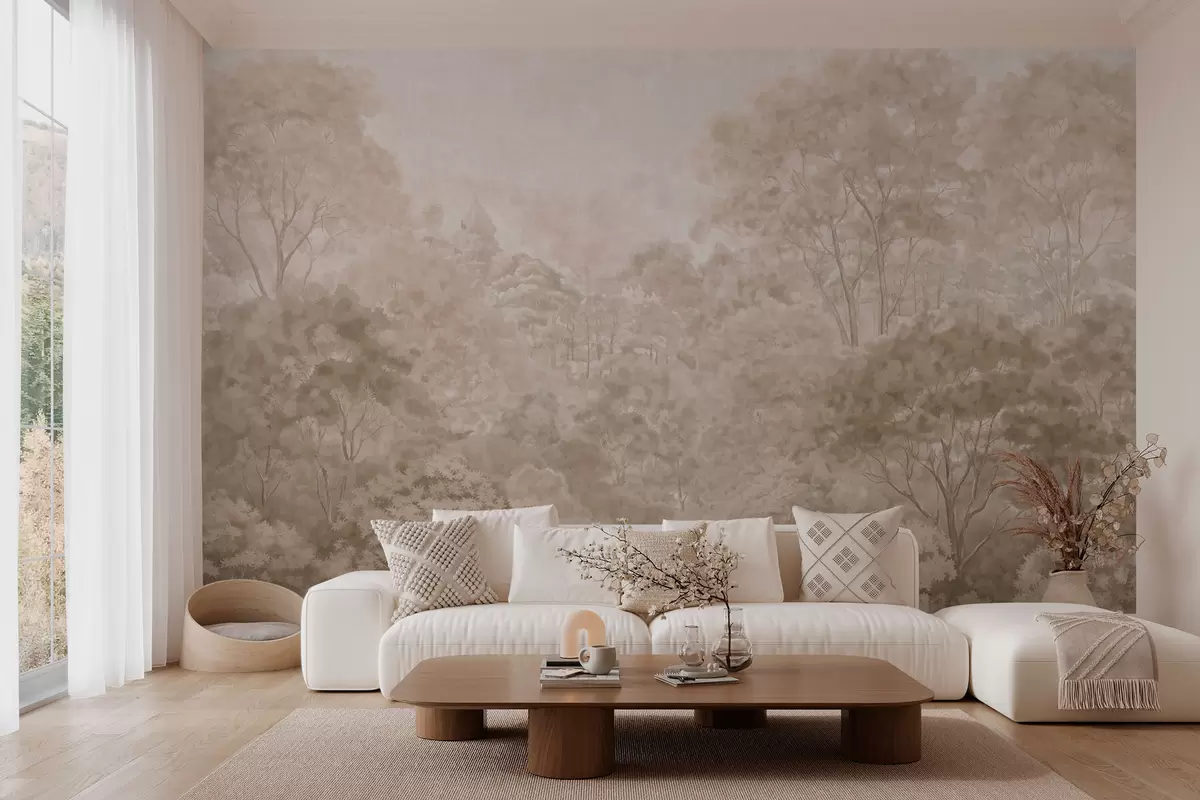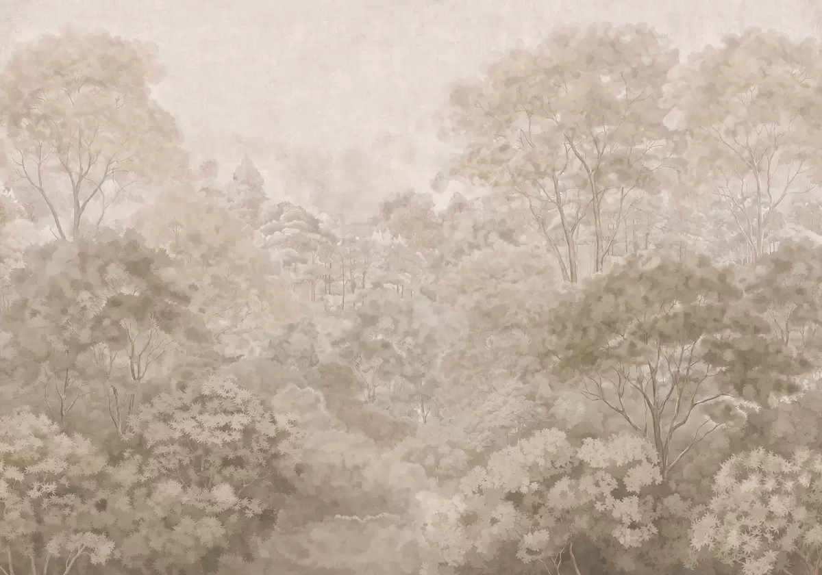 Fotomurales Paisaje forestal de estilo vintage en cálidos tonos beige Nr. w05433v1