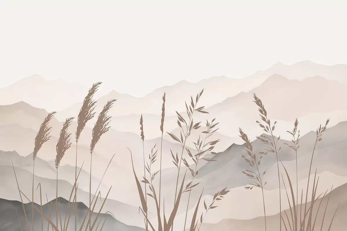 Fotomurales Siluetas de hierba con las montañas de fondo Nr. w05501v1