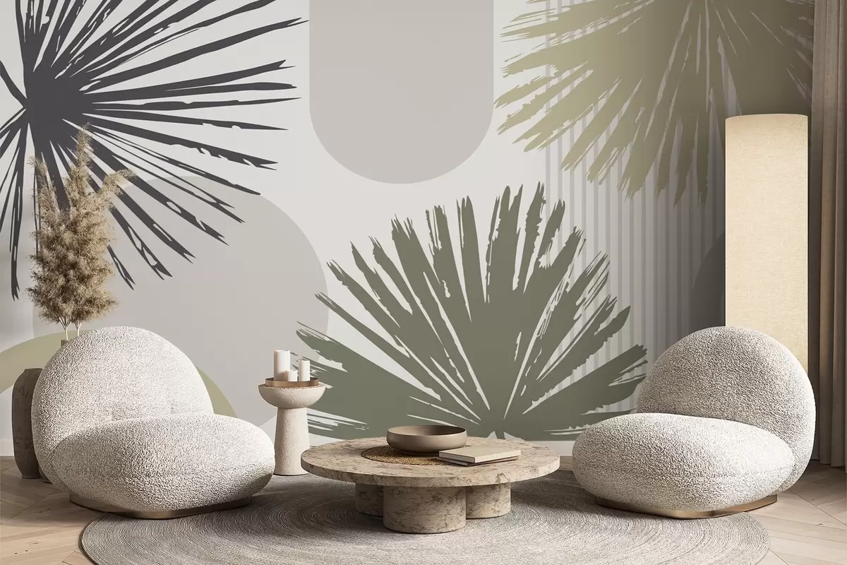 Fotomurales Abstracción con siluetas vegetales y geométricas Nr. w05505v2