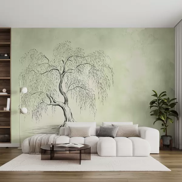 Fotomurales Sauce sobre fondo de acuarela gris verde Nr. w07969v1