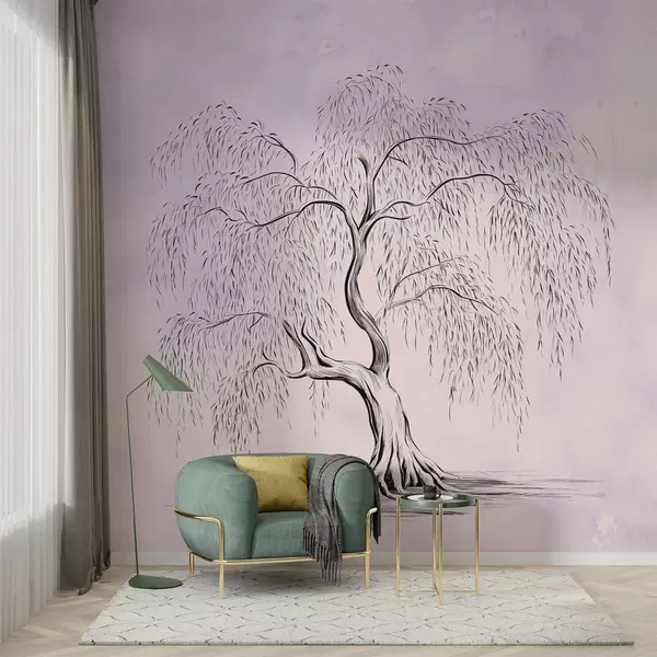 Fotomurales Sauce sobre fondo de acuarela gris púrpura Nr. w07969v2