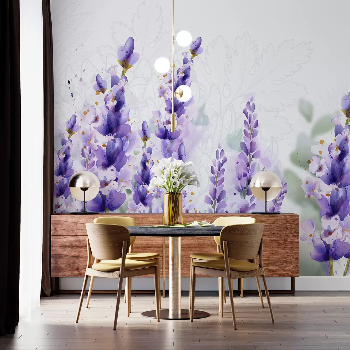 Fotomurales Flores de lavanda morada en un campo, con enfoque suave y fondo borroso Nr. w08231