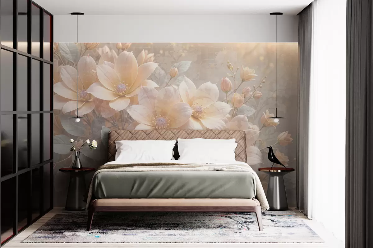 Fotomurales Flores de colores pastel con delicados pétalos sobre un fondo de textura difuminada , creando una atmósfera serena Nr. w08273