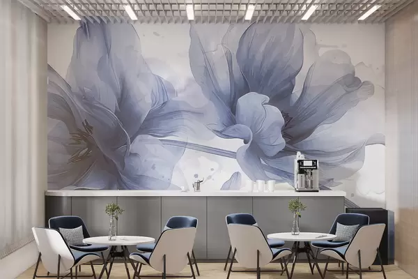 Fotomurales Suaves y etéreas flores de dalia azules y blancas con delicados pétalos en capas sobre un fondo difuminado Nr. w08308