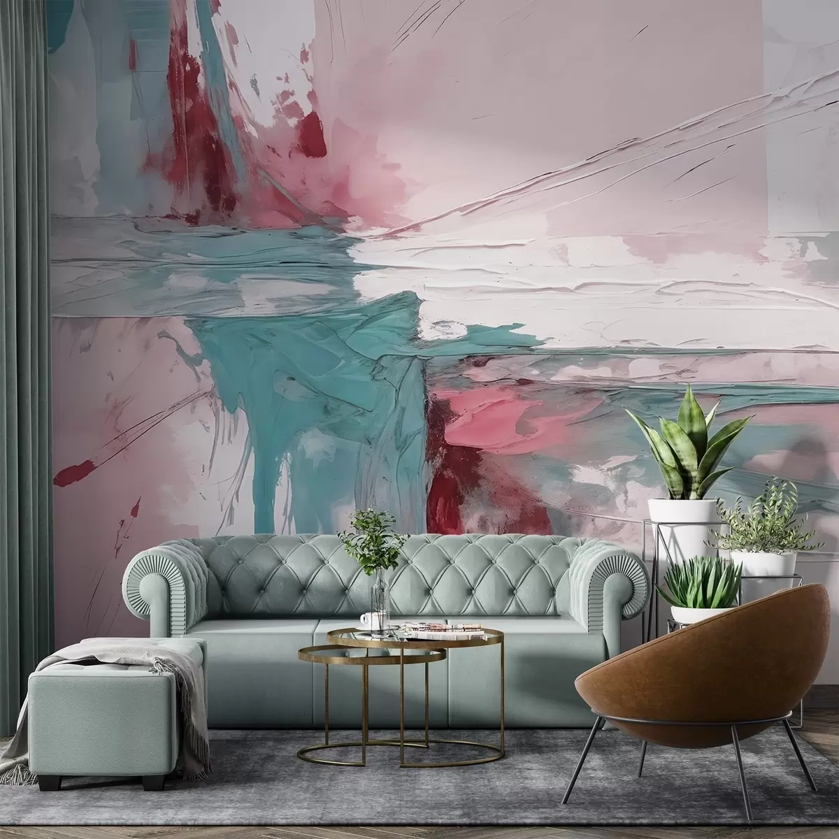 Fotomurales Composición minimalista de arte abstracto con atrevidas pinceladas de pintura rosa, azul y blanca Nr. w08414v1