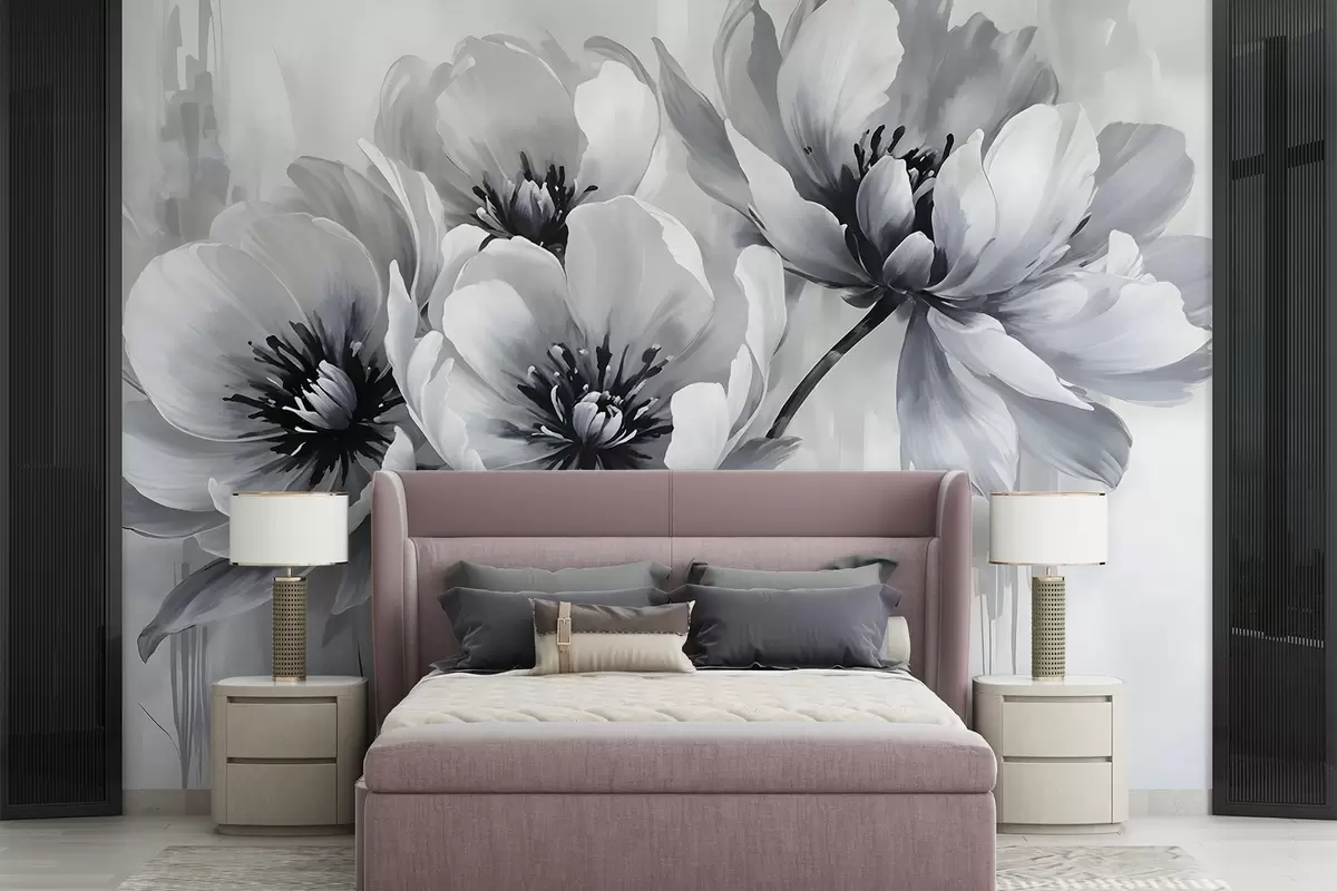 Fotomurales Flores de tulipán monocromas con pétalos suaves y difuminados sobre un fondo claro Nr. w08418