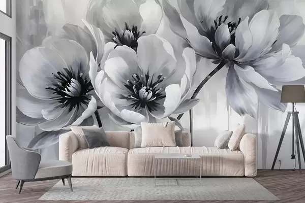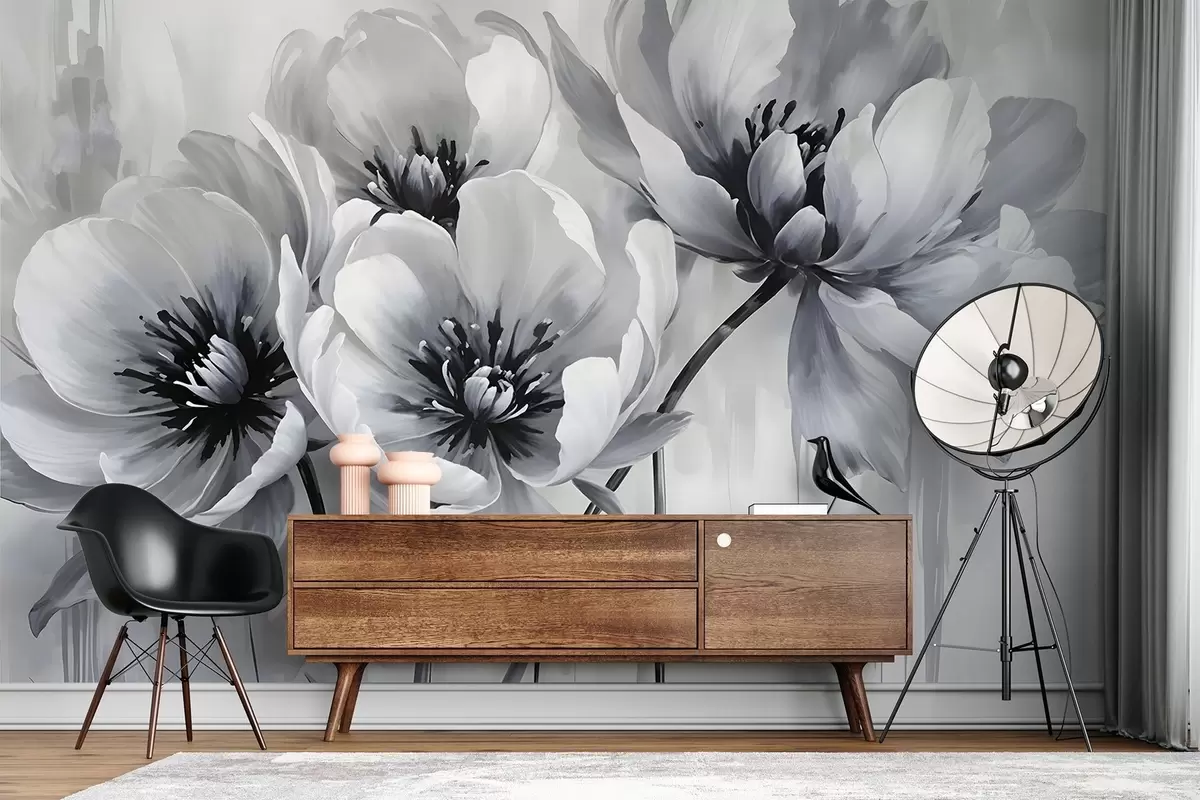 Fotomurales Flores de tulipán monocromas con pétalos suaves y difuminados sobre un fondo claro Nr. w08418