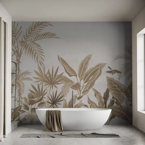 Fotomurales Selva tropical con palmeras y pájaros en tonos sepia Nr. w08496v1