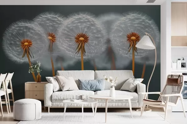 Fotomurales Dientes de león aéreos sobre un fondo natural oscuro Nr. w08498
