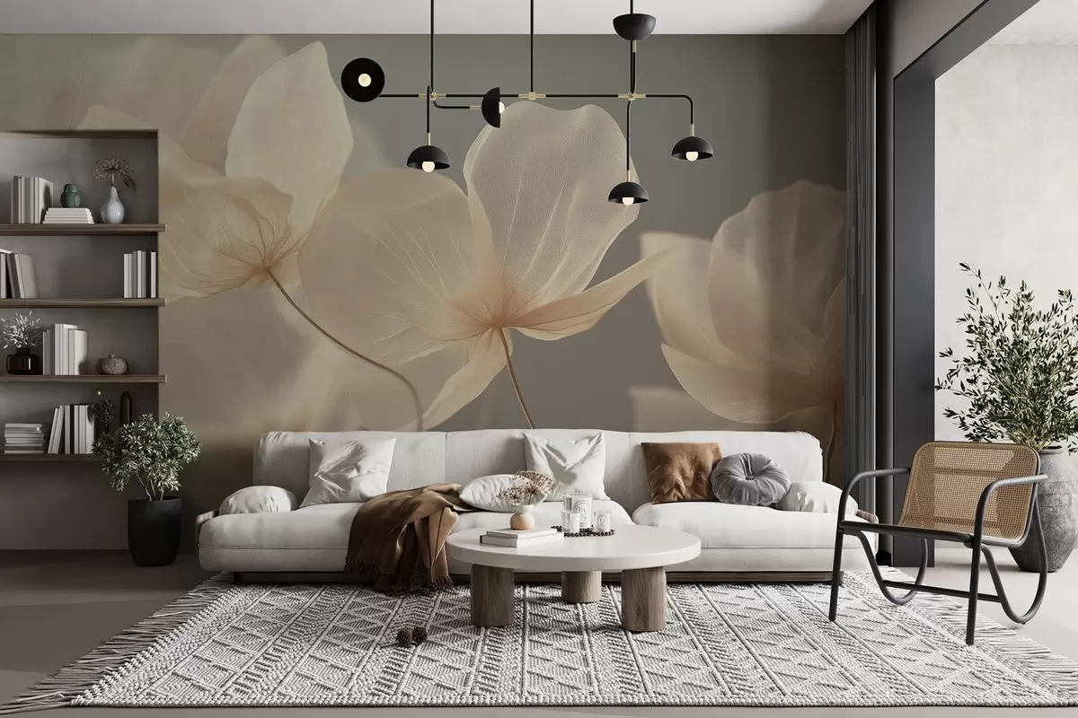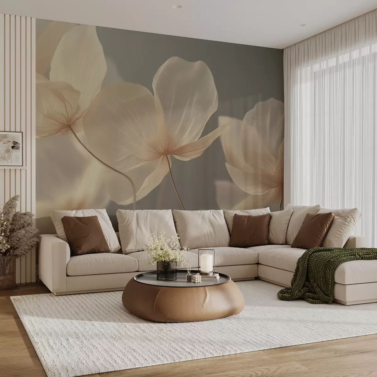 Fotomurales Pétalos de loto, una delicada composición con fondo gris Nr. w08500v2