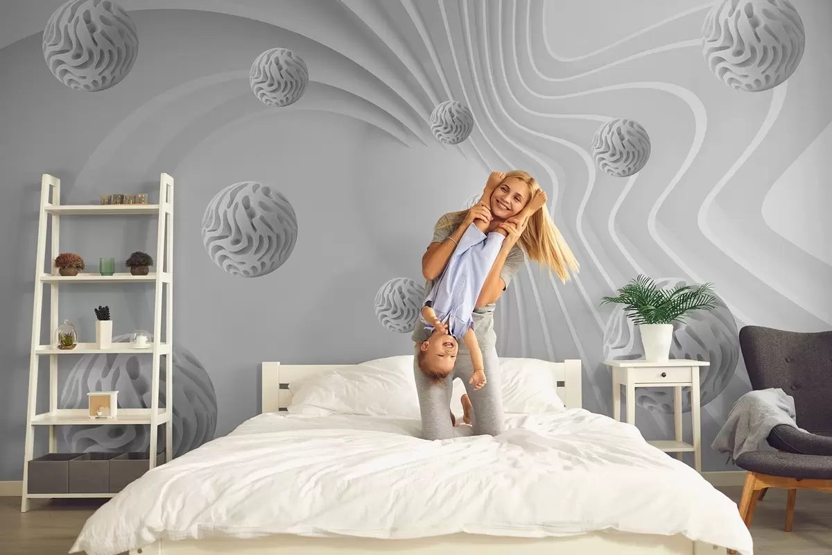 Fotomurales abstracción gris 3D con esferas y efecto de profundidad Nr. w08553