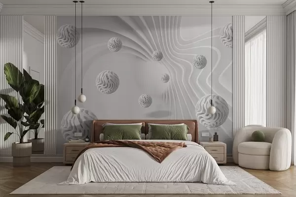 Fotomurales abstracción gris 3D con esferas y efecto de profundidad Nr. w08553