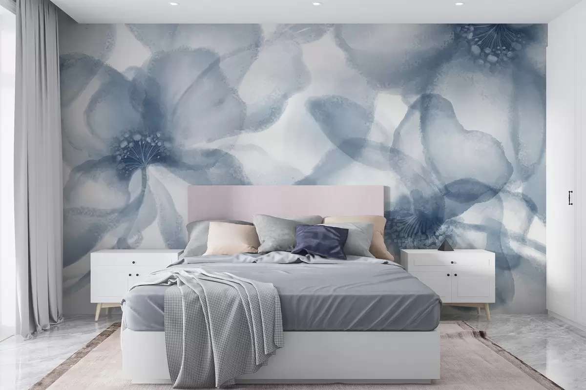 Fotomurales Flores azules abstractas suaves y difuminadas que crean un estampado floral sereno y tranquilizador Nr. w08607
