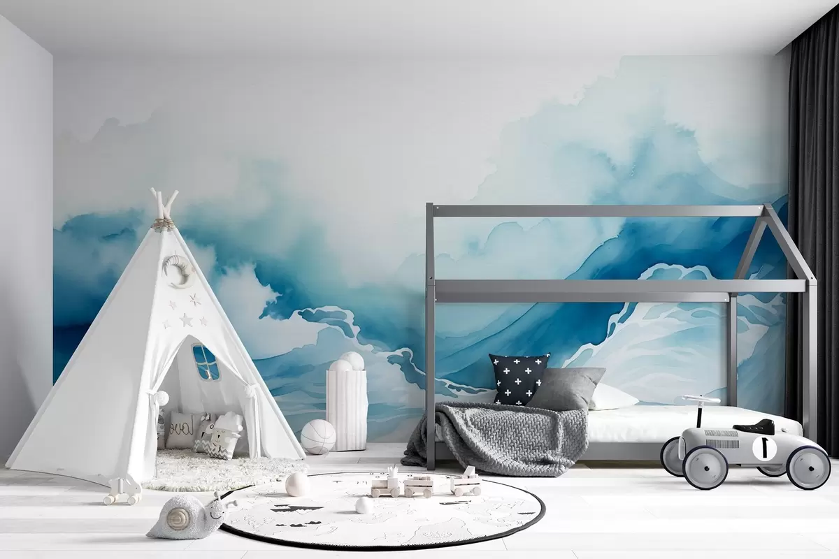 Fotomurales Olas del mar en estilo acuarela en tonos azules Nr. w08655