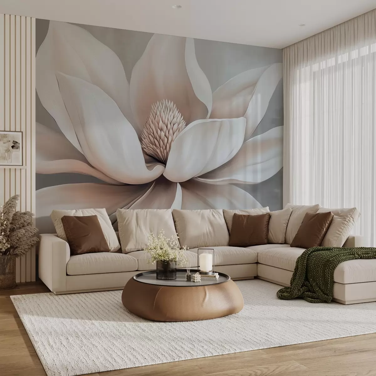 Fotomurales Elegante flor de magnolia con pétalos largos y suaves sobre un fondo gris suave Nr. w08705