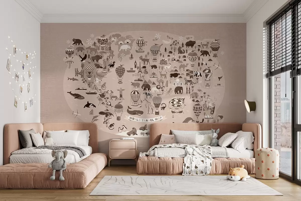 Se puede limpiar suavemente con una esponja suave. Los murales de pared con recubrimiento de barniz pueden limpiarse con agua.