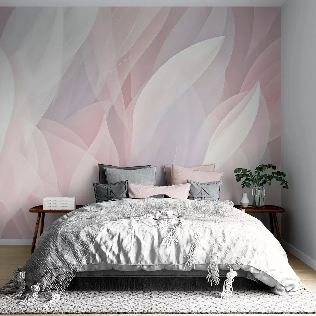 Fotomurales Diseño abstracto con suaves formas de pétalos en tonos rosas y blancos que crean un efecto de capas Nr. w08774
