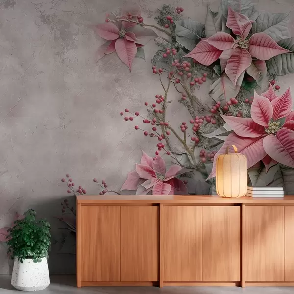 Fotomurales Flores de Pascua sobre fondo de hormigón envejecido Nr. w08798
