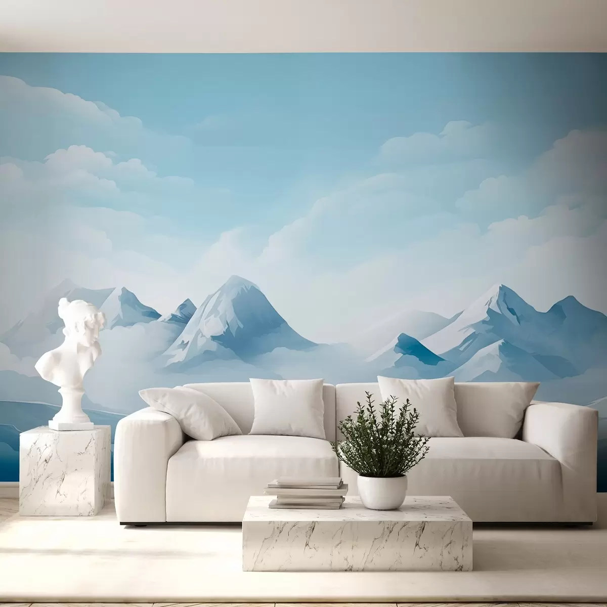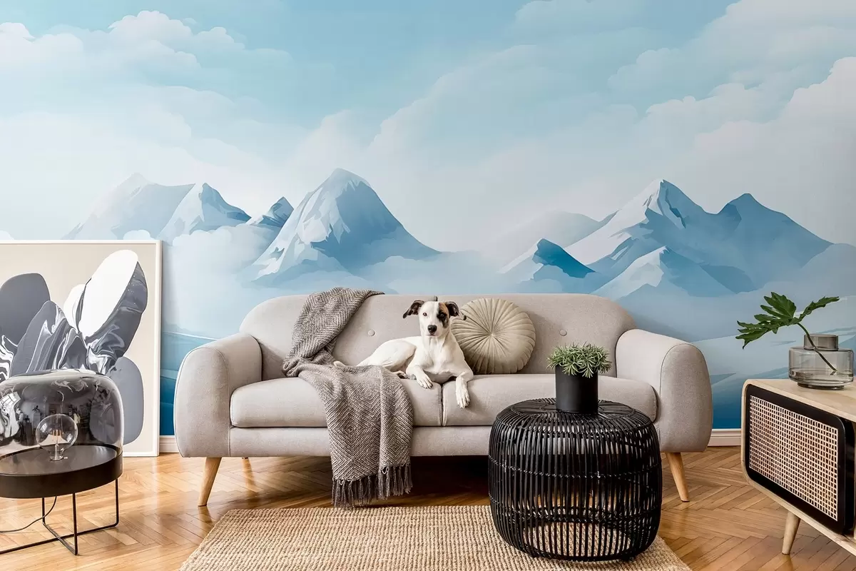 Fotomurales Nubes y montañas azules minimalistas, tiempo gélido Nr. w08811
