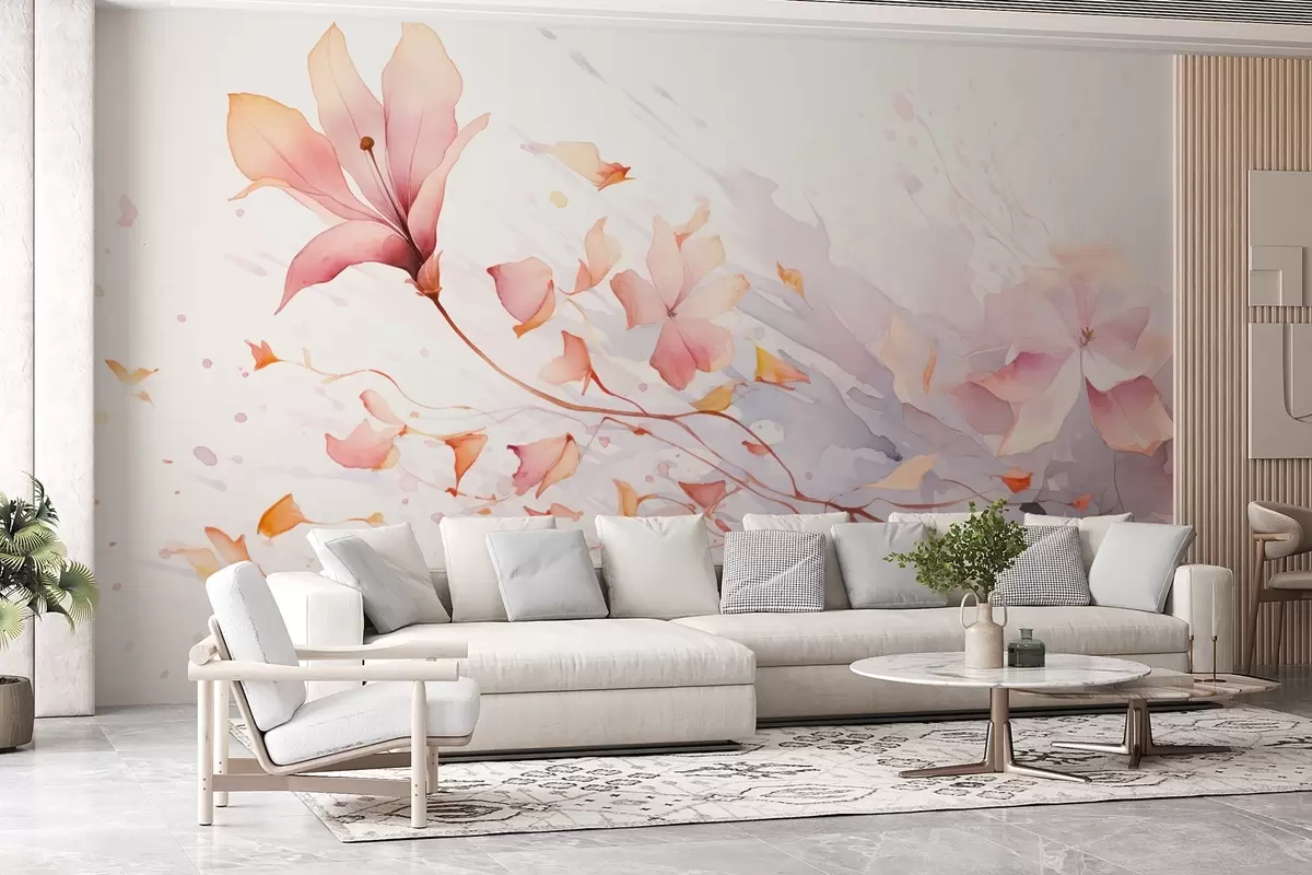 Fotomurales Una flor con pétalos que caen revoloteando al viento en estilo acuarela Nr. w08821