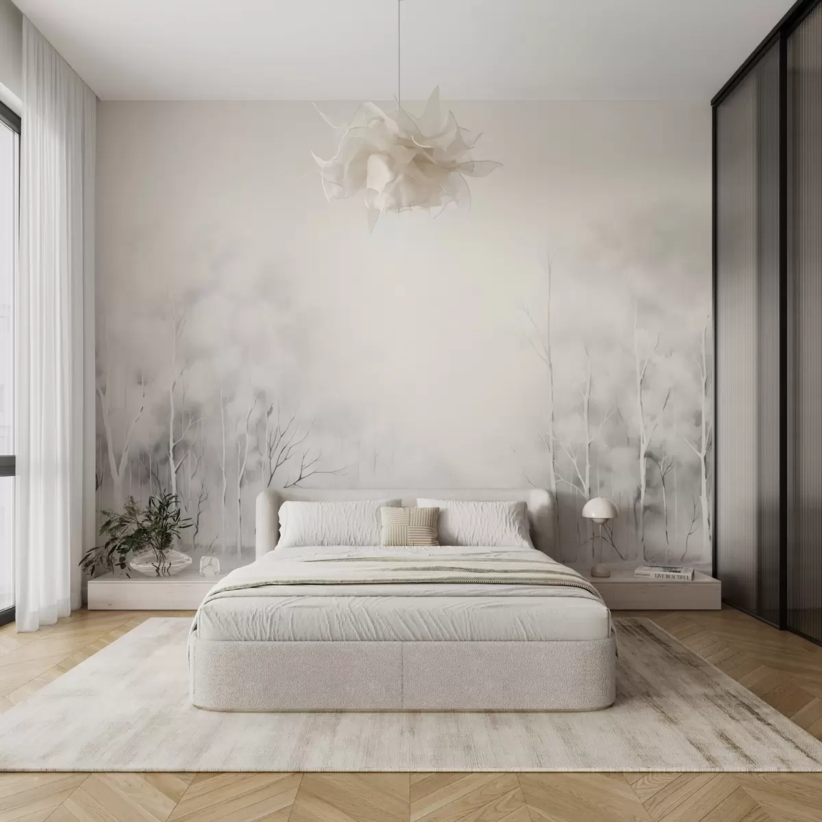Fotomurales Árboles en la niebla en estilo acuarela sobre fondo cálido Nr. w08875