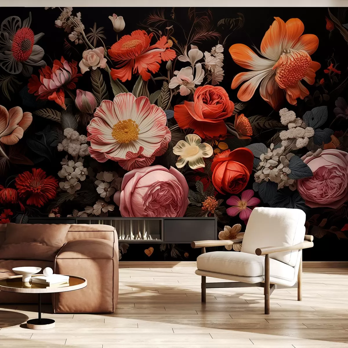 Fotomurales Colorido ramo de flores variadas sobre fondo oscuro en tonos cálidos Nr. w08969