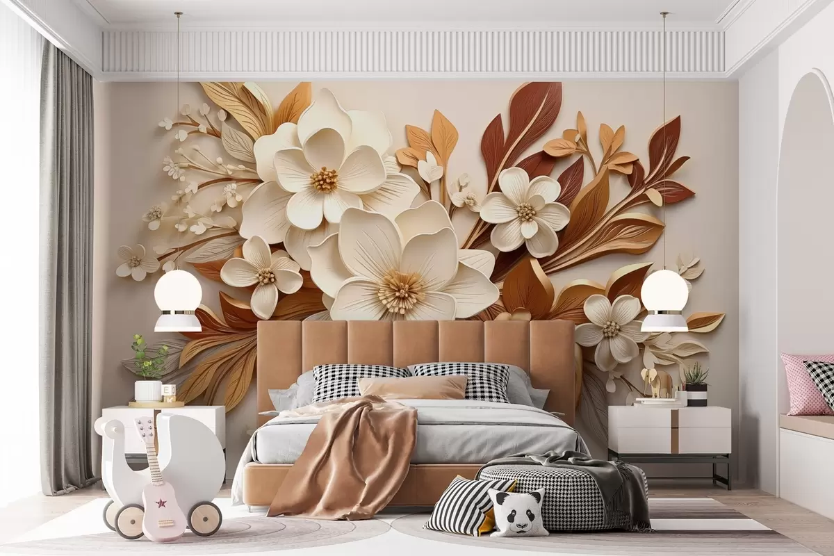 Fotomurales flores 3D con hojas en estilo origami en tonos beige Nr. w08984